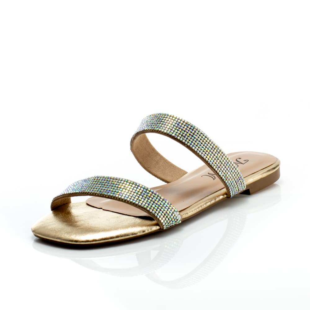 Um verdadeiro toque de luxo para os pés! Esta rasteirinha metalizada na tonalidade ouro light combina brilho suave com a elegância dos strass aplicados, criando um visual sofisticado e delicado. Perfeita para ocasiões especiais ou para elevar produções casuais com glamour e leveza. Confortável e estilosa, é a escolha ideal para quem quer brilhar com sutileza.